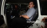 Mantan Ketua KPK Antasari Azhar menaiki kendaraannya seusai mengunjungi gedung Ditreskrimsus, Polda Metro Jaya, Jakarta, Rabu (1/2). (FOTO : Republika/Raisan Al Farisi)
