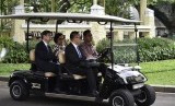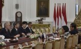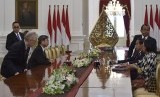 REPUBLIKA.CO.ID, JAKARTA -- Presiden Joko Widodo didampingi Menteri Keuangan Sri Mulyani dan Mensesneg Pratikno (ketiga kanan) menerima kunjungan kehormatan Presiden Asian Development Bank (ADB) Takehiko Nakao di Istana Merdeka, Jakarta, Rabu (1/2).