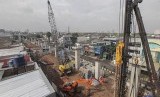 REPUBLIKA.CO.ID, JAKARTA -- Pekerja menyelesaikan proyek pembangunan Stasiun mass rapid transit (MRT) Lebak Bulus, Jakarta, Rabu (1/2).
