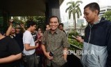 Mantan Senior Manager Engine Management PT. Garuda Indonesai (Persero) Azwar Anas dimintai keterangan oleh awak media seusai menjalani pemeriksaan di gedung Komisi Pemberantasan Korupsi (KPK), Jakarta, Kamis (02/02). (FOTO : Republika/ Raisan Al Farisi)