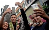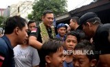 REPUBLIKA.CO.ID, JAKARTA -- Cawagub DKI Jakarta Agus Harimurti Yudhoyono menyapa warga saat berkampanye di Kawasan Kelurahan Kenari, Jakarta, Kamis (2/2).