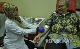 REPUBLIKA.CO.ID, BANDUNG -- Gubernur Jawa Barat Ahmad Heryawan melakukan kegiatan rutin mendonorkan darahnya, di PMI Kota Bandung, Jalan Aceh, Kamis (2/2).