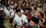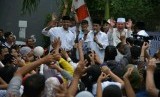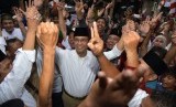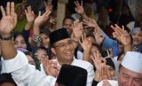 REPUBLIKA.CO.ID, JAKARTA -- Calon Gubernur DKI Jakarta Anies Baswedan melakukan flashmob diiringi lagu "Ganteng Pake Peci" bersama warga sekitar Jalan Kelingkit Kampung Sawah saat sosialisasi janji kerja di kawasan, Menteng Dalam, Tebet, Jakarta Selatan, Kamis (3/2).