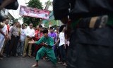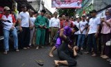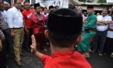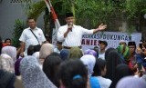 REPUBLIKA.CO.ID, JAKARTA -- Calon Gubernur DKI Jakarta Anies Baswedan disambut Palang Pintu, kesenian khas Betawi di sekitar Jalan Kelingkit Kampung Sawah saat sosialisasi janji kerja di kawasan, Menteng Dalam, Tebet, Jakarta Selatan (3/2).
