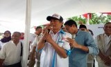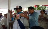 Usai memakaikan baju ke Suryadi, Politisi Gerindra itu langsung memijit pundak Suryadi sebagai bentuk ucapan terima kasih. Lantaran Suryadi sudah bekerja keras untuk mengumpulkan relawan dan mendukung Anies-Sandi.