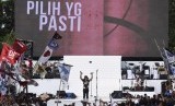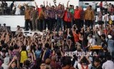 Ketua Umum PDI Perjuangan Megawati Soekarnoputri didampingi Pasangan Calon Gubernur dan Wakil Gubernur DKI Jakarta Nomor Urut Dua Basuki Tjahaja Purnama dan Djarot Saiful Hidayat berpidato saat berlangsungnya Konser Gue 2 di lapangan Ex Driving Range, Sena (FOTO : Republika/Yasin Habibi)
