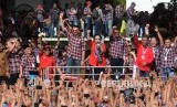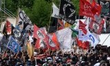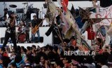 Fans group band Slank membawa atribut saat berlangsungnya Konser Gue 2 di lapangan Ex Driving Range, Senayan, Jakarta, Sabtu (4/2). (FOTO : Republika/Yasin Habibi)