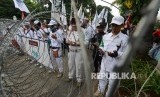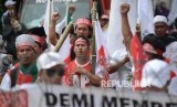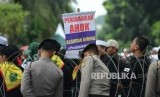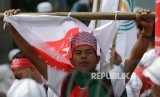 Massa dari berbagai ormas Islam melakukan aksi saat sidang kasus penistaan Agama dengan terdakwa Basuki Tjahaja Purnama atau Ahok yang berlangsung di Auditorium Kementan, Jakarta, Selasa (7/2). (FOTO : Republika/Raisan Al Farisi)