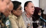 Kapolda Metro Jaya M Iriawan (kedua kanan) saat memberikan keterangan pers usai menggelar pertemuan bersama di Gedung KPU DKI Jakarta, Selasa (7/2). (FOTO : Republika/Rakhmawaty La'lang)