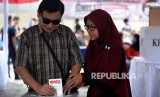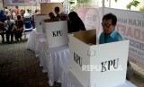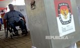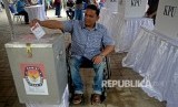 REPUBLIKA.CO.ID, JAKARTA -- Warga penyandang disabilitas mengikuti simulasi pemungutan dan perhitungan suara pilgub DKI Jakarta di kantor KPU Jakarta Utara, Rabu (8/2).