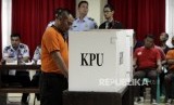 REPUBLIKA.CO.ID, JAKARTA -- Petugas Sipir dan warga binaan melakukan simulasi pemungutan dan penghitungan suara Pilkada di Lapas Kelas 1 Cipinang, Jakarta, Kamis (9/2).