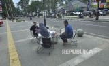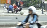 Sejumlah warga duduk dikursi yang ada di trotoar Kawasan Jalan Ir H. Djuanda (Dago), Kota Bandung, Senin (13/2).  (FOTO : Republika/Mahmud Muhyidin)