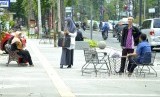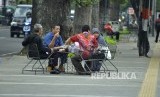 REPUBLIKA.CO.ID, BANDUNG -- Sejumlah warga duduk di kursi yang ada di trotoar Kawasan Jalan Ir H. Djuanda (Dago), Kota Bandung, Senin (13/2).