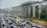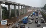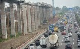 REPUBLIKA.CO.ID, JAKARTA -- Kendaraan melintas di samping pembangunan proyek Light Rail Transit (LRT) di Cibubur, Jaktim, Selasa (14/2).