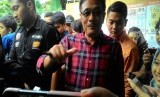 Calon wakil gubernur DKI Jakarta Djarot Saiful Hidayat pamer jari kelingking bertinta ungu usai menyoblos di TPS 08 di Kelurahan Kuningan Timur Kecamatan Setiabudi, Rabu (15/2) (FOTO : Republika/Noer Qomariah)