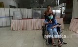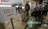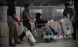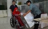 REPUBLIKA.CO.ID, JAKARTA -- Seorang pasien dibantu oleh keluarganya memasukan surat suara kedalam kotak suara di Rumah Sakit Cipto Mangunkusumo, Jakarta, Rabu (15/2).