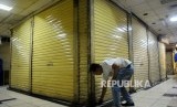 REPUBLIKA.CO.ID, JAKARTA -- Petugas memeriksa gembok saat berjaga di pertokoan yang tutup di Tanah Abang Blok C, Jakarta Pusat, Rabu (15/2).