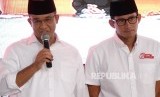 REPUBLIKA.CO.ID, JAKARTA -- Pasangan Cagub dan Cawagub nomer tiga DKI Jakarta Anies Baswedan - Sandiaga Uno bersama pasangan bertemu usai pencoblosan di Posko Pemenangan Cicurug, Jakarta Pusat, Rabu (15/2).