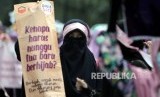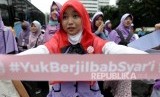 REPUBLIKA.CO.ID, JAKARTA -- Ratusan muslimah yang tergabung dalam Solidaritas Peduli Jilbab (SPJ) melakukan aksi damai long march sosialisasi menutup aurat saat berlangsungnya Hari Bebas kendaraan bermotor (HBKB) di Jl. Jenderal Sudirman, Ahad (19/2).