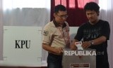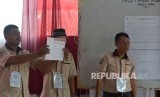 Petugas KPPS menghitung surat suara di TPS 29 Kelurahan Kalibata, Kecamatan Pancoran, yang melakukan Pemungutan Suara Ulang (PSU), Jakarta, Ahad (19/2). (FOTO : Republika/Raisan Al Farisi)