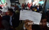 Warga menunjukan surat suara saat pemungutan suara ulang di TPS 29, Kelurahan Kalibata, Kecamatan Pancoran, Jakarta, Ahad (19/2). (FOTO : Republika/Raisan Al Farisi)