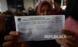 Warga menunjukan surat C-6 ulang sebelum menggunakan hak suaranya saat pemungutan suara ulang di TPS 29, Kelurahan Kalibata, Kecamatan Pancoran, Jakarta, Ahad (19/2). (FOTO : Republika/Raisan Al Farisi)