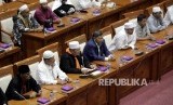 Perwakilan Forum Umat Islam (FUI) mengikuti rapat dengar pendapat dengan Komisi III DPR di Kompleks Parlemen, Senayan, Jakarta, Selasa (21/2). (FOTO : Republika/Rakhmawaty La'lang)
