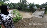 Warga melihat kondisi jembatan sungai Marisa II di Desa Ombulo, Kecamatan Limboto Barat, Kabupaten Gorontalo, Gorontalo, Kamis (23/2). Jembatan yang menghubungkan dusun I Wohu dan dusun II Buhutayadu ambruk (FOTO : Adiwinata Solihin/Antara)