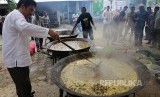 Warga memasak dan membagikan kuah beulangong (kari daging sapi) pada perayaan maulid akbar Nabi Muhammad SAW di Banda Aceh, Aceh, Kamis (24/2). Masakan kuah beulangong telah menjadi tradisi turun temurun sebagai menu utama (FOTO : Irwansyah Putra/Antara)