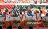 Tari Lensosawat untuk sambutan selamat datang ditampilkan pada pembukaan Tanwir Muhammadiyah di Islamic Center Ambon, Maluku, Jumat (23/2). (FOTO : Republika/ Wihdan Hidayat)