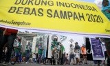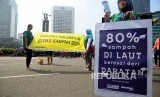 REPUBLIKA.CO.ID, JAKARTA -- Aktivis membentangkan spanduk saat aksi Dukung Indonesia Bebas Sampah di Bundaran HI, Jakarta, Ahad (26/2).