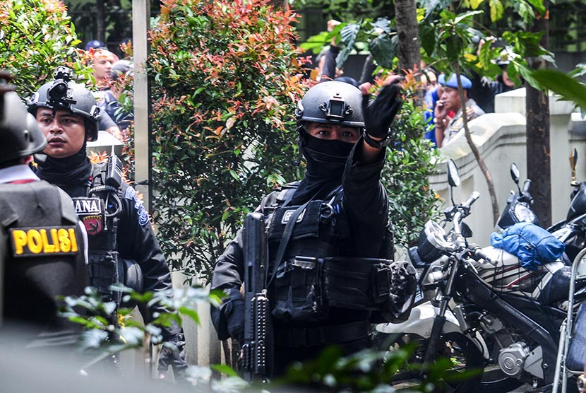 REPUBLIKA.CO.ID, BANDUNG -- Petugas kepolisian bersenjata lengkap berhasil melumpuhkan terduga teroris di Kantor Kelurahan Arjuna, Bandung, Jawa Barat, Senin (27/2).