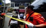 Petugas kepolisian memasang garis polisi di Kantor Kelurahan Arjuna, Bandung, Jawa Barat, Senin (27/2). (FOTO : Antara/Novrian Arbi)