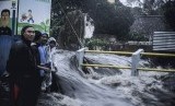 Warga melihat aliran Sungai Citepus yang meluap dan menyebabkan banjir di kawasan Pagarsih, Bandung, Jawa Barat, Senin (27/2). (FOTO : Antara/Novrian Arbi)