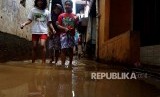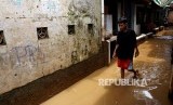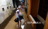 REPUBLIKA.CO.ID, JAKARTA -- Warga melintasi genangan ketika banjir menggenangi kawasan Kebon Pala, Jakarta Timur, Selasa (28/2).