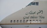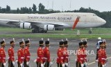 Pesawat yang mengangkut Raja Arab Saudi Salman bin Abdulaziz Al Saud mendarat di Bandara Halim Perdanakusuma, Jakarta, Rabu (1/3). (FOTO : Republika/Edwin Dwi Putranto)