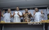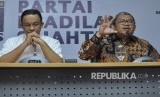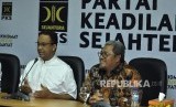Gubernur Jawa Barat Ahmad Heryawan (kanan) menyampaikan paparannya didampingi Calon Gubernur Jakarta Anies Baswedan (kiri) saat konferensi pers di Kantor DPW PKS Jabar, Jalan Soekarno Hatta, Kota Bandung, Rabu (1/3). (FOTO : Mahmud Muhyidin)
