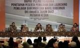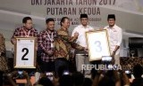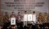 REPUBLIKA.CO.ID, JAKARTA -- Komisi Pemilihan Umum DKI menetapkan pasangan calon gubernur dan calon wakil gubernur Pilkada DKI putaran dua. Pasangan nomor urut 2 Basuki Tjahaja Purnama - Djarot Saiful Hidayat dan pasangan nomor urut 3 Anies Baswedan - Sandiaga Uno ditetapkan sebagai pasangan peserta pilkada DKI putaran dua. Pasangan Ahok - Djarot meninggalkan acara penetapan dan mewakilkannya kepada tim suksesnya menyusul keterlambatan acara ini dimulai.