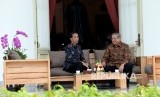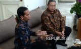 REPUBLIKA.CO.ID, Jakarta -- Presiden Joko Widodo bertemu Presiden RI keenam Susilo Bambang Yudhoyono di Beranda Istana Merdeka, Jakarta, Kamis (9/1). Mereka bertemu membicarakan seputar politik dan ekonomi Indonesia. Pertemuan itu dimulai pukul 12.00 WIB.