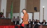 REPUBLIKA.CO.ID, JAKARTA -- Terdakwa kasus dugaan penistaan agama Basuki Tjahaja Purnama atau Ahok memasuki ruang sidang di auditorium Kementerian Pertanian, Jakarta, Selasa (14/3).