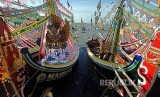 Nelayan menghias perahu untuk persiapan upacara 'petik laut' di Pantai Desa Kaduara Timur, Sumenep, Jawa Timur, Selasa (14/3). Petik laut yang berlangsung dari tanggal 14-16 Maret tahun ini. (FOTO : Saiful Bahri/Antara)