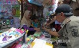 Petugas Satpol PP Kota Surabaya mengembalikan sejumlah 'Permen Keras' atau 'permen dot' yang sebelumnya sempat diamankan kepada pedagang di Surabaya, Jawa Timur, Selasa (14/3). (FOTO : Didik Suhartono/Antara)