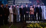 Menteri Agama Lukman Hakim Saifuddin (kelima kanan) berfoto dengan para delegasi dalam pembukaan Konferensi World Zakat Forum (WZF), Jakarta, Rabu (15/3). (FOTO : Republika/ Yasin Habibi)