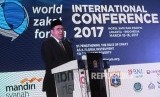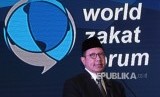 Menteri Agama Lukman Hakim Saifuddin memberikan sambutan saat pembukaan Konferensi World Zakat Forum (WZF), Jakarta, Rabu (15/3). (FOTO : Republika/ Yasin Habibi)