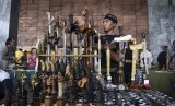 REPUBLIKA.CO.ID, JAKARTA -- Pengunjung mengamati keris-keris yang dijual saat Pameran Keris Nasional di Kompleks Parlemen, Senayan, Jakarta, Rabu (15/3).