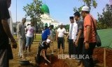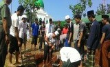 REPUBLIKA.CO.ID, DEPOK -- Para santri pondok pesantren Al Hikam Kukusan, Beji Depok mempersiapkan pemakaman dan menggali kubur untuk almarhum KH Hasyim Muzadi yang berada di halaman belakang Masjid Al Hikam, Kukusan, Beji, Depok, Kamis (16/3).