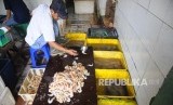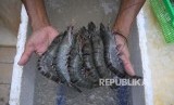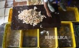 REPUBLIKA.CO.ID, JAKARTA -- Pekerja memilah udang di tempat distributor udang yang merupakan salah satu nasabah mikro BSM di Kalibaru, Cilingcing, Jakarta Utara, Kamis (16/3).