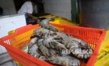 Pekerja memilah udang di tempat distributor udang yang merupakan salah satu nasabah mikro BSM di Kalibaru, Cilingcing, Jakarta Utara, Kamis (16/3) (FOTO : Republika/Agung Supriyanto)