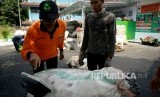 REPUBLIKA.CO.ID, JAKARTA -- Petugas menimbang sampah di Bank Sampah Induk "Gesit", Jakarta, Jumat (17/3).