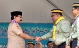 REPUBLIKA.CO.ID, BANDAR SERI BEGAWAN -- Ketua Kwartir Nasional Gerakan Pramuka, Adhyaksa Dault menerima Penghargaan Bintang Jasa Cemerlang dari Persekutuan Pengakap Negara Brunei Darussalam, dalam Upacara Pembukaan Perkemahan Pengakap Kebangsaan ke-22 di Pusat Kegiatan dan Latihan Pengakap Kebangsaan Brunei Darussalam, Senin pagi (20/3).